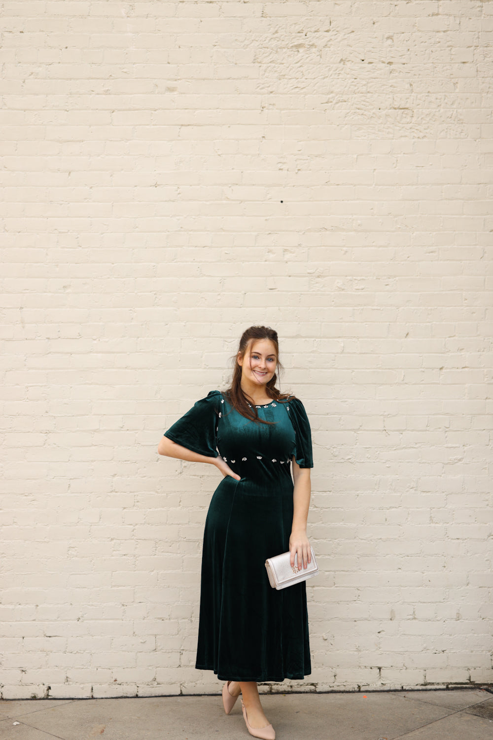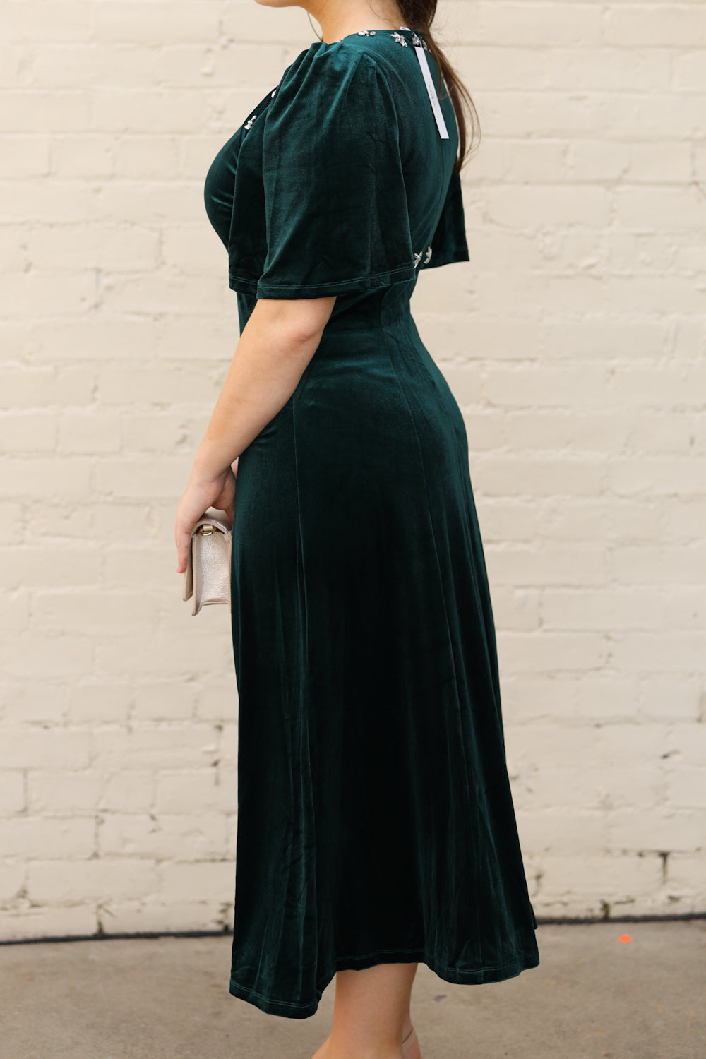 Regular price $58.99Celebrate the season in elegance with the Holly Dress. This sophisticated piece combines comfort with glamour, featuring a graceful round neckline and convenient back zipper. Crafted from luxuriously soft velvet and fully lined for a polished feel, the dress showcases a flattering high waistline and shimmering jewel embellishments across the bodice. Whether you're attending holiday gatherings or special occasions, this dress delivers timeless style and confidence for any memorable event.