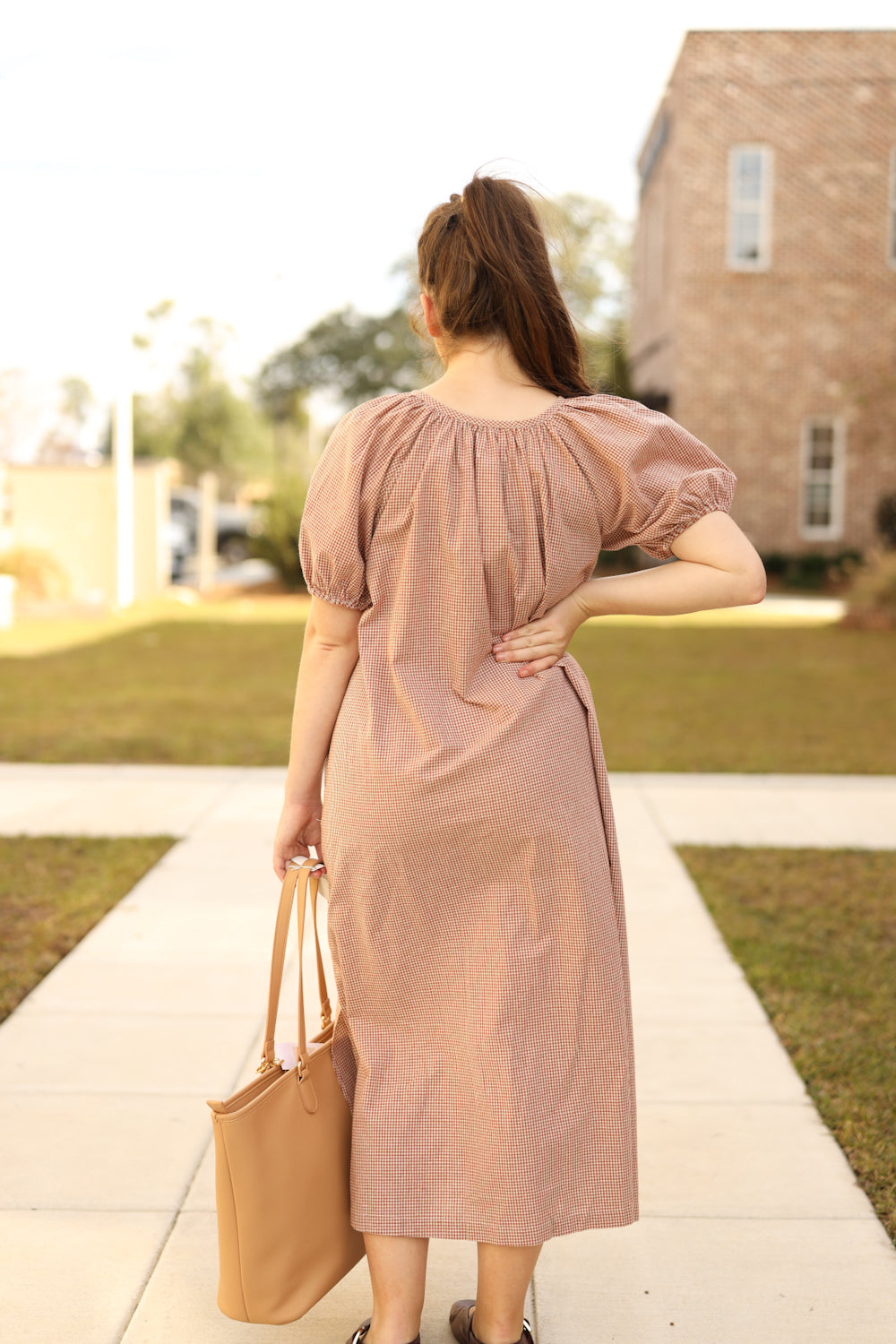 Regular price $65.99Our Jayne Dress has a relaxed silhouette and features a rounded neckline and delicate puff sleeves that feel as good as they look. Functional buttons extend the full length of the bodice, offering nursing accessibility when you need it. Practical pockets keep your hands free, while the 11.5-inch side slits at the hem provide flexibility—adjust them to your comfort level by pinning or sewing as desired. Whether you're heading out for errands or enjoying a laid-back day, this dress supports your lifestyle with effortless style and thoughtful details.