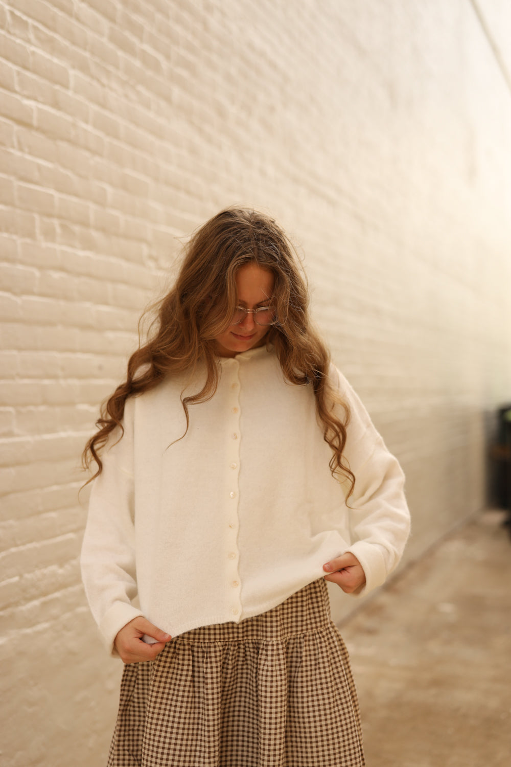 Meet your new cardigan staple in a stunning winter white. The Kandi Cardigan wraps you in incredibly soft fibers while refined rolled edges add visual interest and sophistication. With fully functional buttons, you control how you wear it—buttoned for structure or open for comfort. This adaptable piece transitions seamlessly from laid-back days to more polished moments, making it the reliable layer you'll reach for again and again.