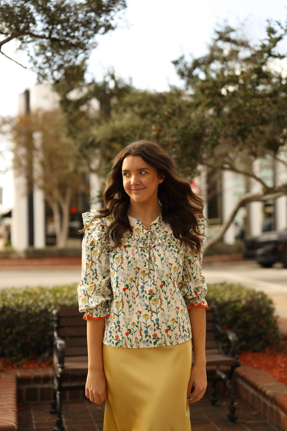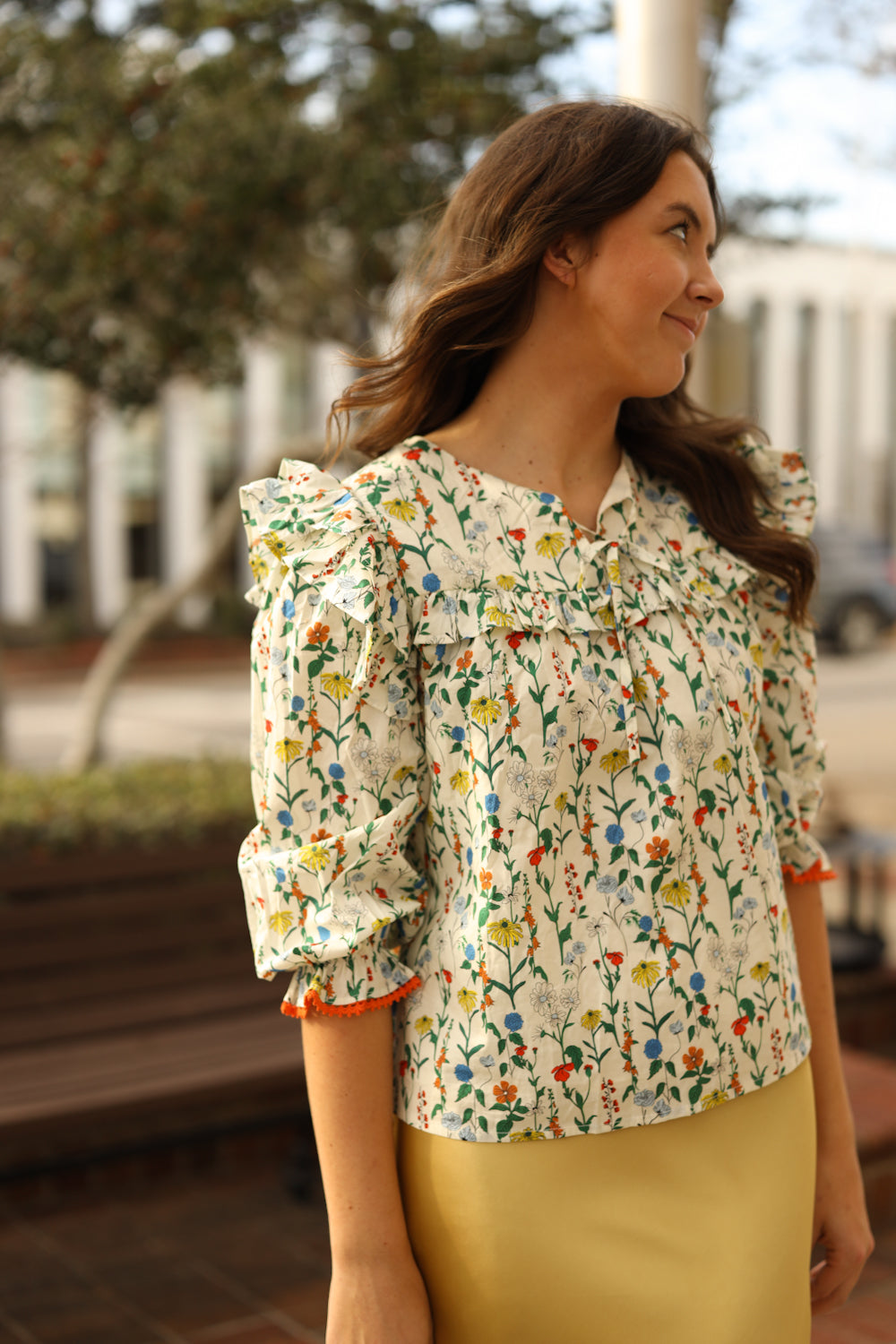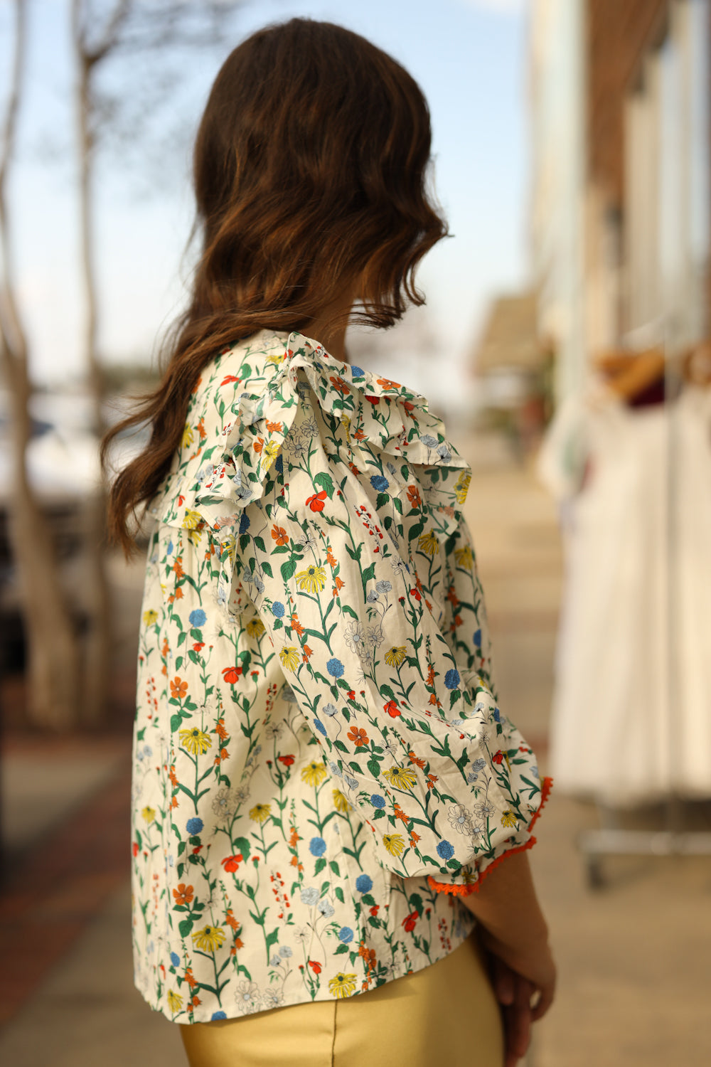 Regular price $36.99Our Lottie Floral Top has an array of a multicolored floral print on an ivory background. Adorable ruffle details are seen on the upper bodice. The round neckline is detailed with a tie closure. The voluminous 3/4 length sleeves are completed with a simple ruffle cuff. This top is the perfect item to complete your style for a casual evening out with friends!