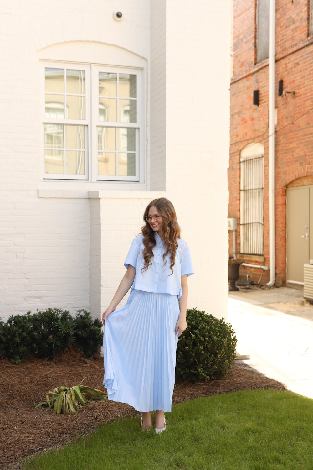 Regular price $43.99The Olivia Top is your new spring essential—a delightful button-down that checks all the boxes. Featuring a crisp collar, fully functional buttons for easy nursing access, and charming accordion pleats along the back, this adorable top moves with you throughout your day. Flowy, functional, and undeniably fun, it's the perfect piece to refresh your seasonal wardrobe.
