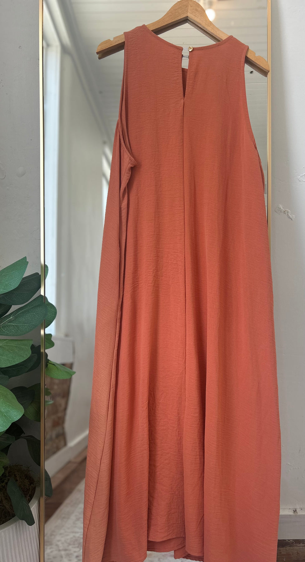 The Hensley Dress is a must-have item for your closet! This sleeveless dress is perfect to layer under a blazer, denim jacket, and/or button-up shirt! This is a maxi length dress and also has pockets!