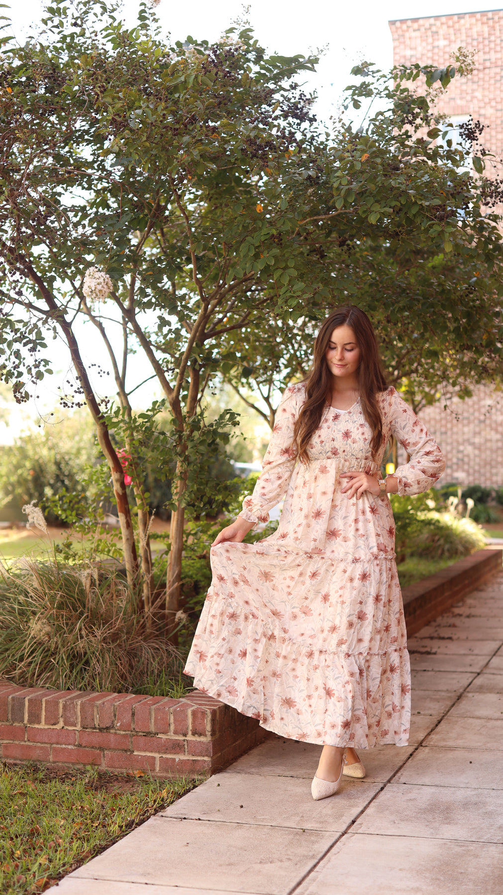 Regular price $65.99The Reena Dress showcases a charming rustic floral pattern set against a cream backdrop. It includes a smocked bodice, pockets and a tiered skirt design, offering both comfort and style. Ideal for any special event, this dress brings a graceful touch to your wardrobe.