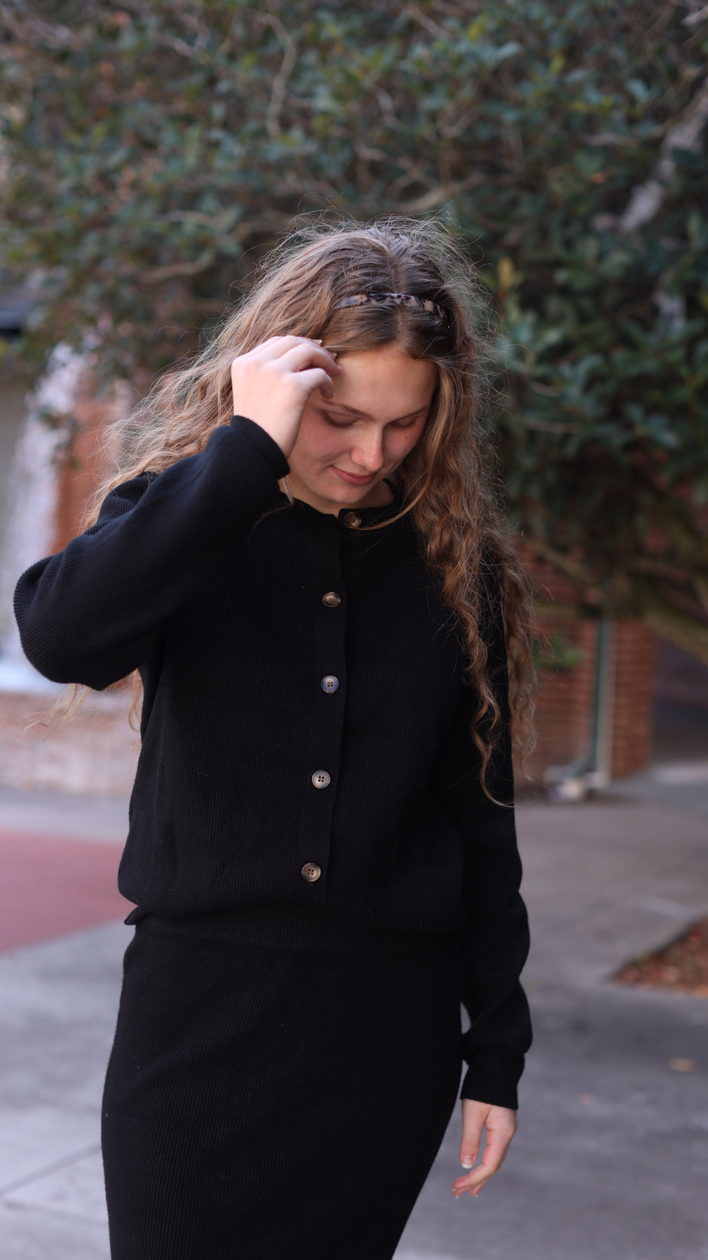 Regular price $45.99Our Spencer Cardigan is crafted from soft ribbed fibers, featuring a round neckline and long sleeves. It includes functional buttons on the bodice, making it an ideal piece to effortlessly complete any casual or dressy style. It pairs well with our Flynn Sweater Skirt as a set, or it can be worn as a separate. Perfect for a casual day out with friends!