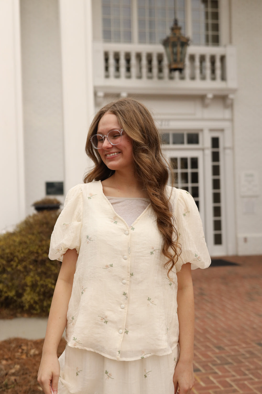 Regular price $46.99Our Janet Floral Top features a timeless neutral floral print on a soft cream background. The charming V-neckline and delicate puff sleeves create a flattering, feminine silhouette perfect for any season. Versatile and thoughtfully crafted, this piece transitions seamlessly from casual days to special occasions.
