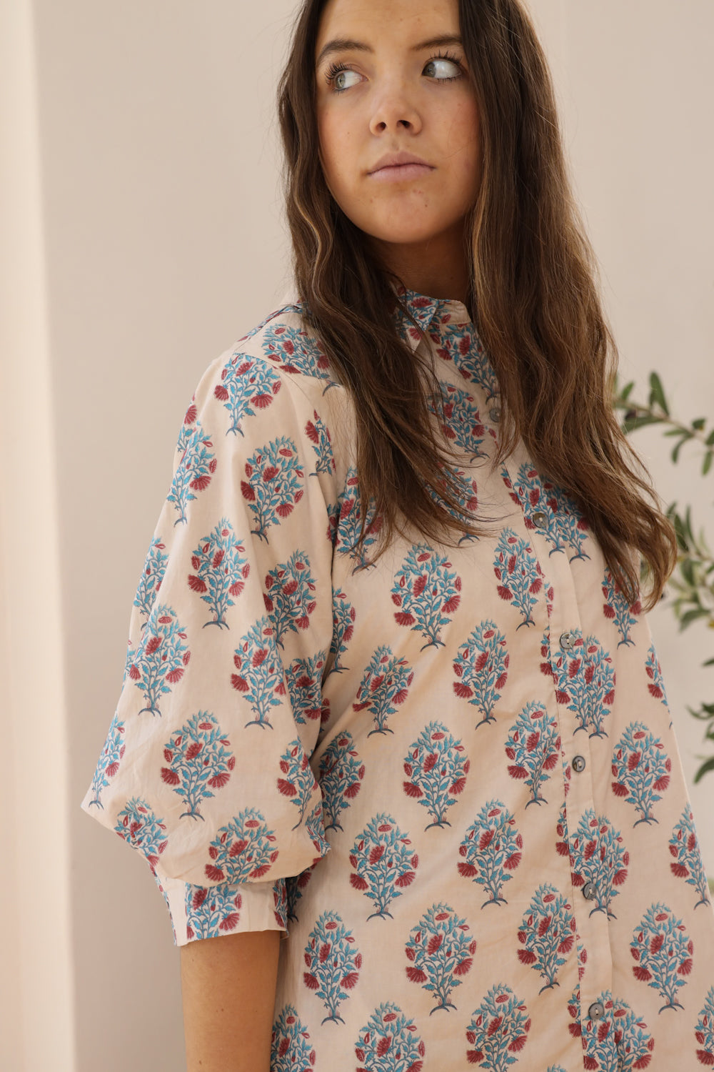 - Voluminous 3/4 length sleeves | Button cuffs