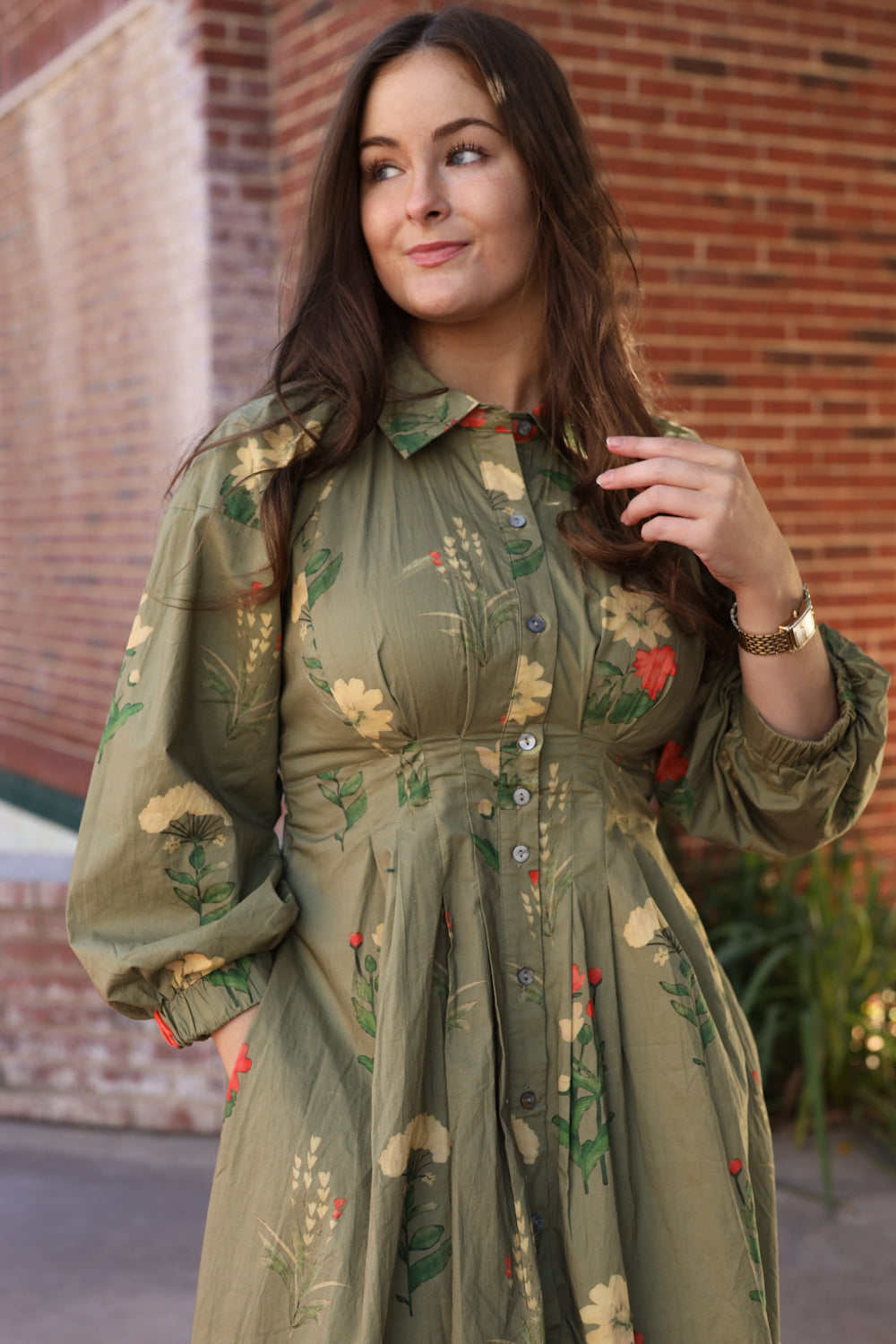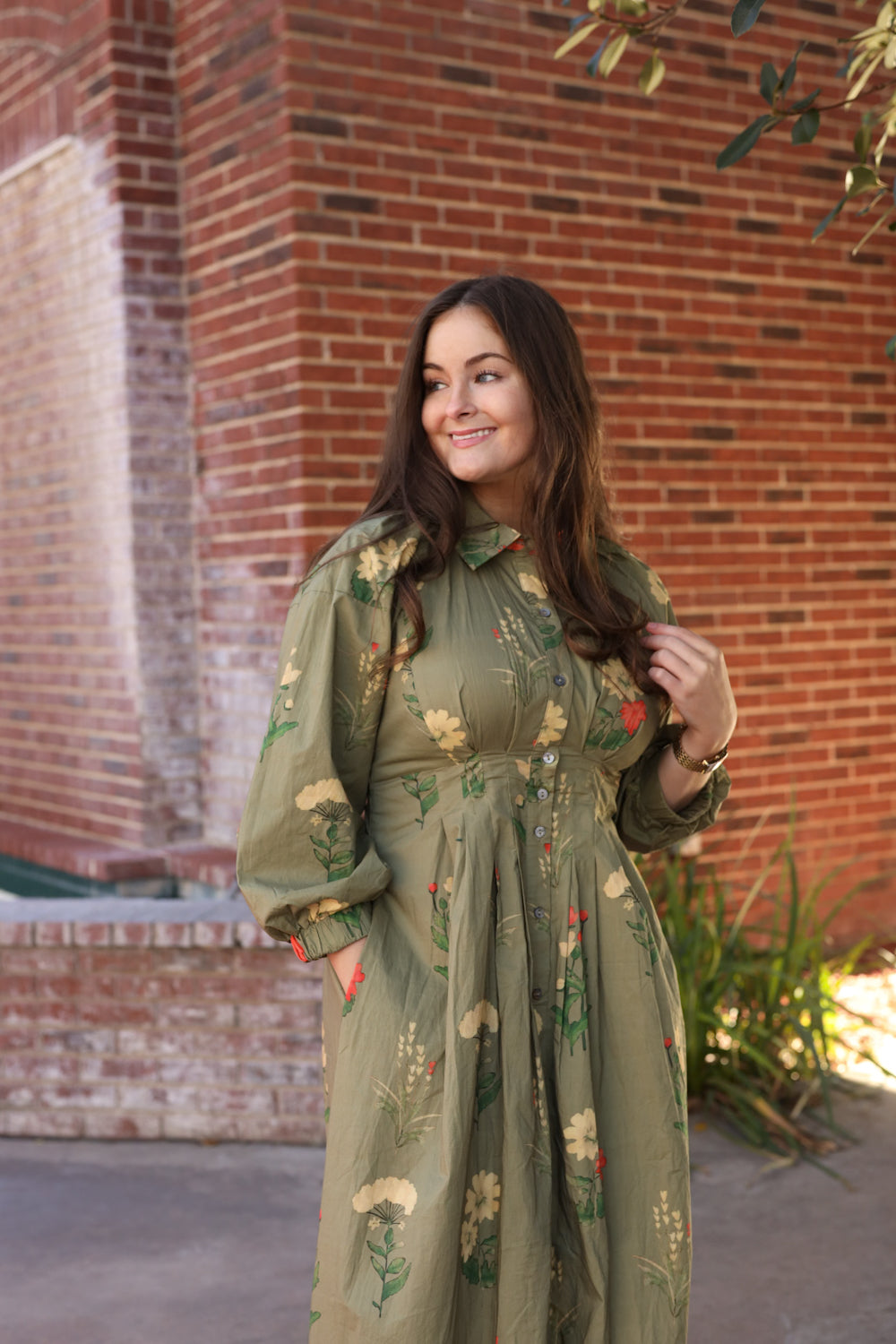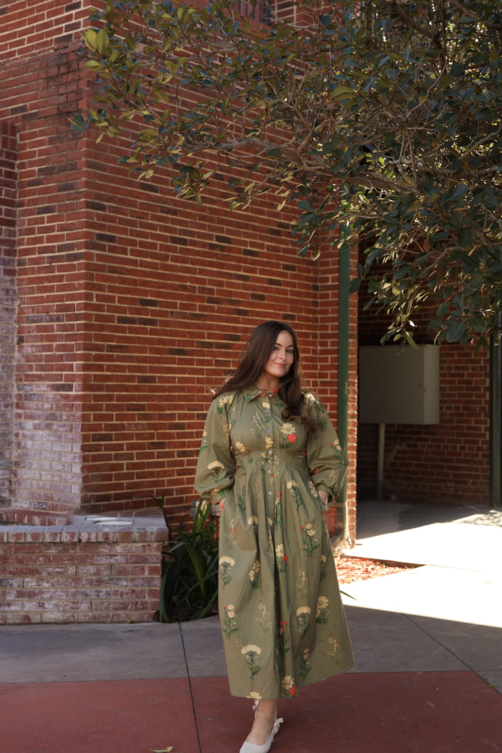 Regular price $62.99The Stinson Dress is a beautifully crafted midi that honors both style and practicality. This dress showcases a vibrant floral design featuring warm yellows, greens, and oranges against a rich olive base. The timeless collared neckline paired with full-length button closure offers nursing convenience and effortless dressing throughout your day. Long sleeves with elastic cuffs provide comfortable coverage, while a subtle pintuck detail at the waist delivers a flattering, defined silhouette. Thoughtful pockets add everyday functionality without compromising the polished aesthetic. Perfect for navigating professional environments or celebrating special moments, this versatile dress becomes a trusted companion that supports your confidence and authentic style.