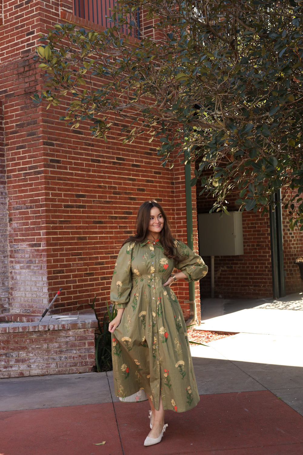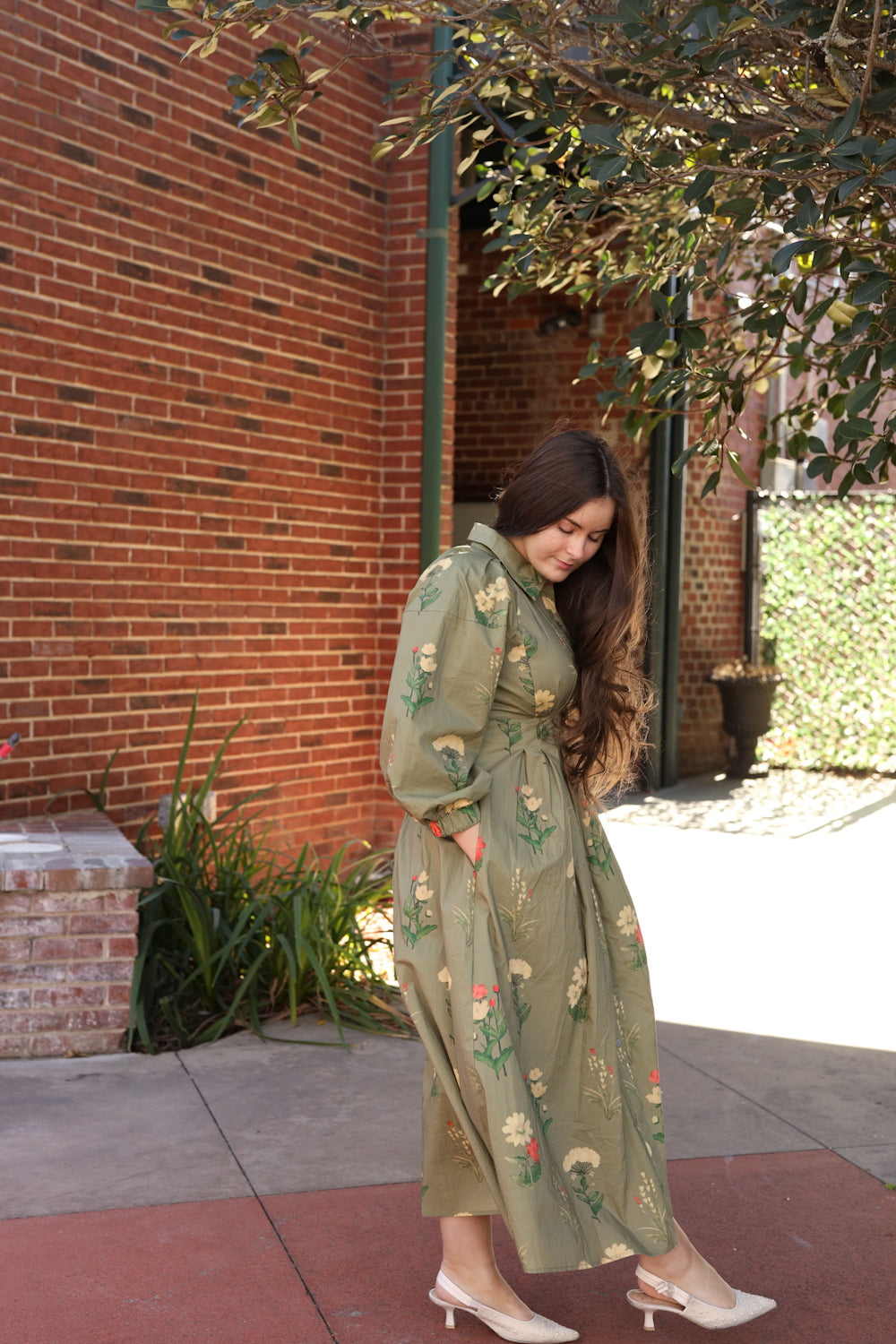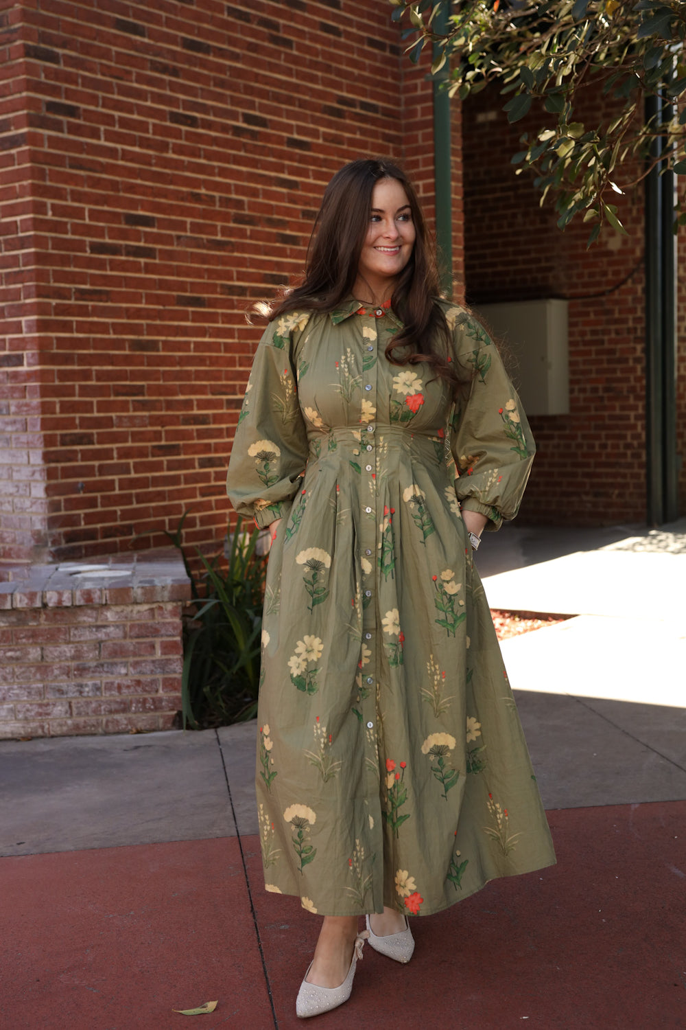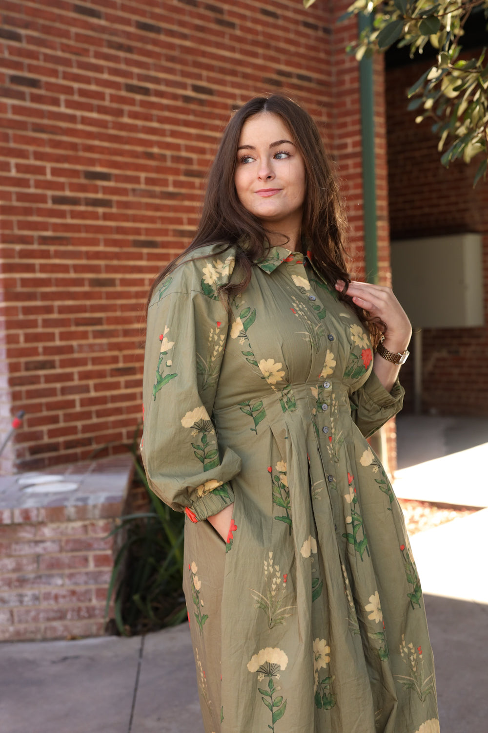 Regular price $62.99The Stinson Dress is a beautifully crafted midi that honors both style and practicality. This dress showcases a vibrant floral design featuring warm yellows, greens, and oranges against a rich olive base. The timeless collared neckline paired with full-length button closure offers nursing convenience and effortless dressing throughout your day. Long sleeves with elastic cuffs provide comfortable coverage, while a subtle pintuck detail at the waist delivers a flattering, defined silhouette. Thoughtful pockets add everyday functionality without compromising the polished aesthetic. Perfect for navigating professional environments or celebrating special moments, this versatile dress becomes a trusted companion that supports your confidence and authentic style.