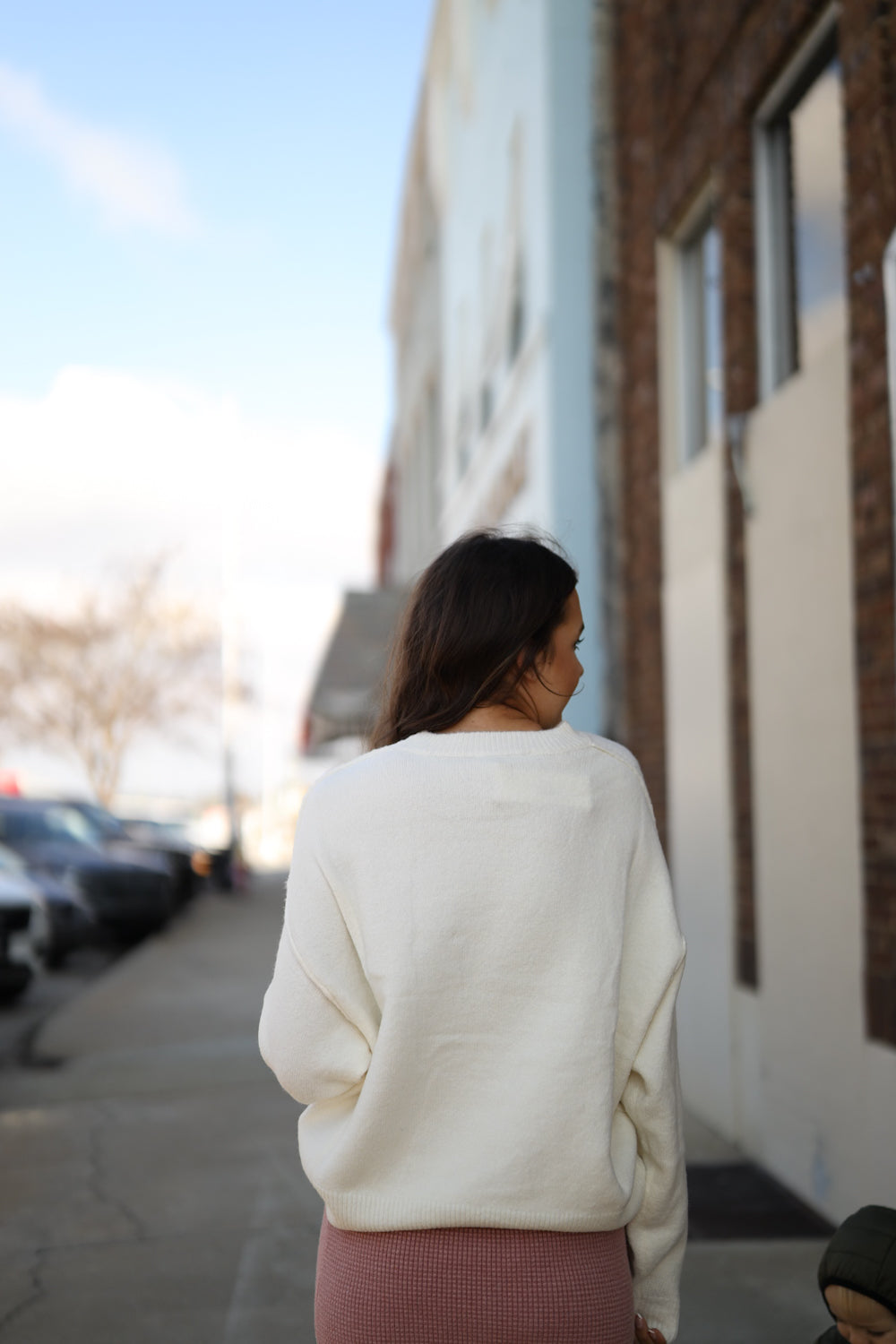 The Carter Sweater is the ultimate comfort piece you'll love wearing again and again. Crafted from incredibly soft fibers, this oversized sweater wraps you in warmth and ease. Refined ribbed detailing at the neckline, cuffs, and hem adds structure and polish to the relaxed silhouette, creating a balanced, effortless look. The generous fit allows you to layer freely and move with confidence, while the crisp winter white tone pairs beautifully with everything in your closet. Whether you're dressing up or keeping it casual, this sweater adapts to your needs and supports your personal style.