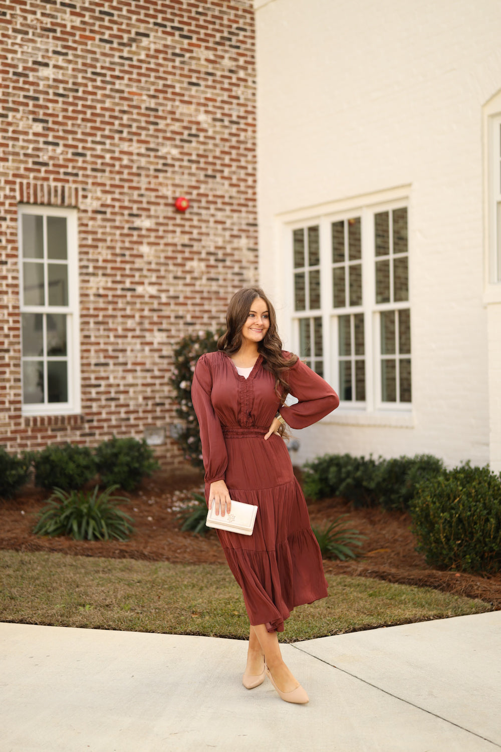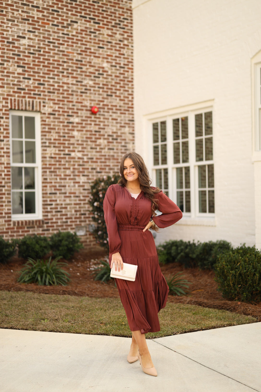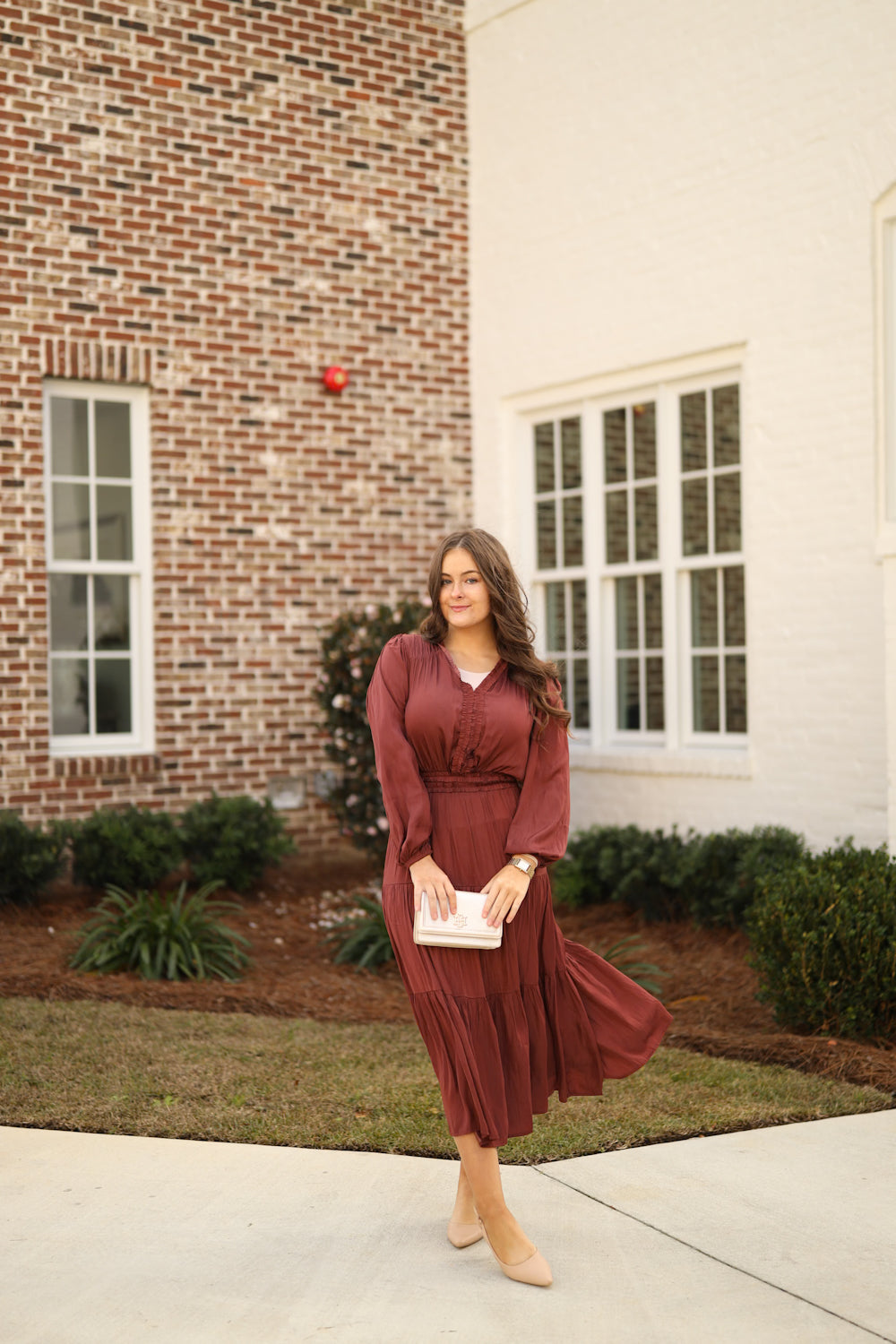 - Model is 5’4” & wears a small/medium. She is wearing a small in this dress.