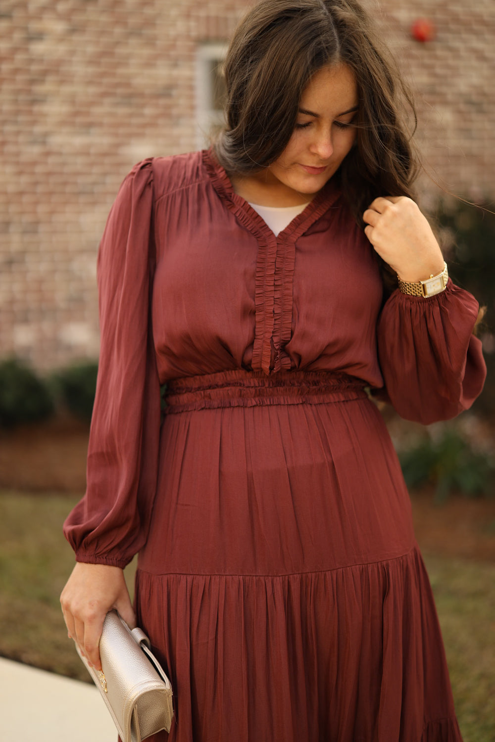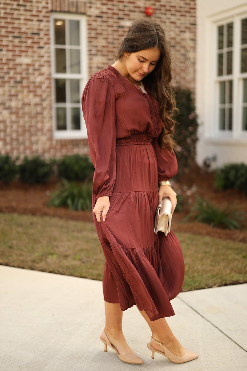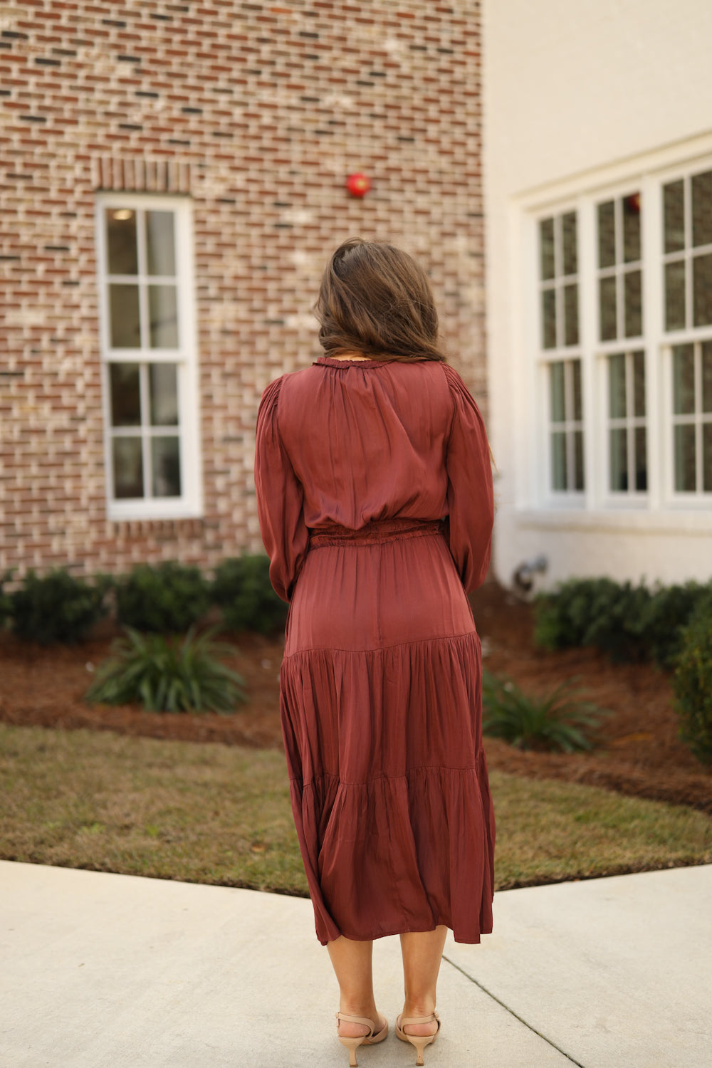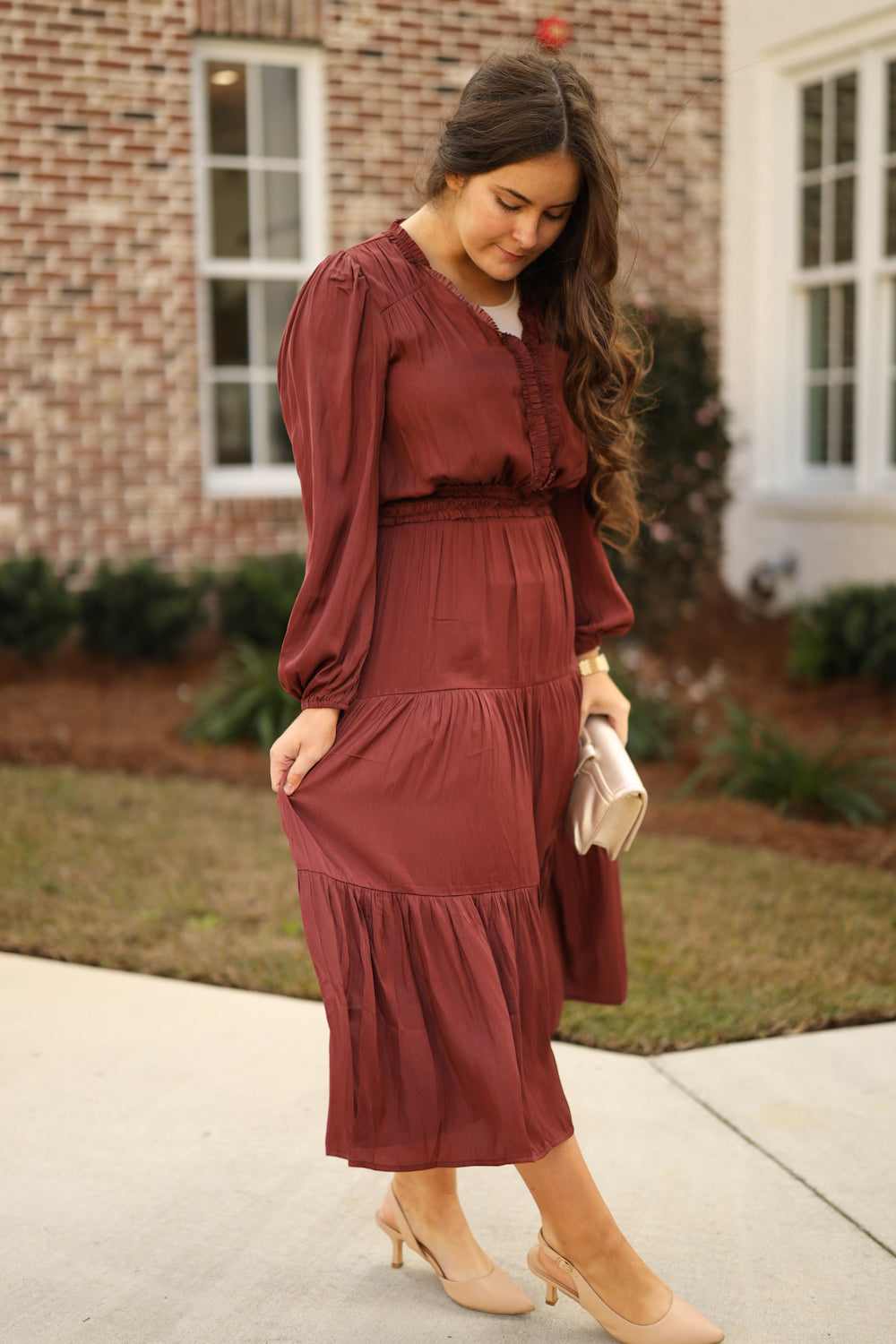 The Idalia Satin Dress is a timeless choice that supports your confidence from day to night. Soft ruffles frame the neckline, bodice, and waist, creating a charming silhouette with sophistication. The midi length and tiered construction offer graceful movement, while functional pockets add everyday practicality. Wear this dress knowing you've selected a piece that makes you feel supported, elegant, and authentically yourself.
