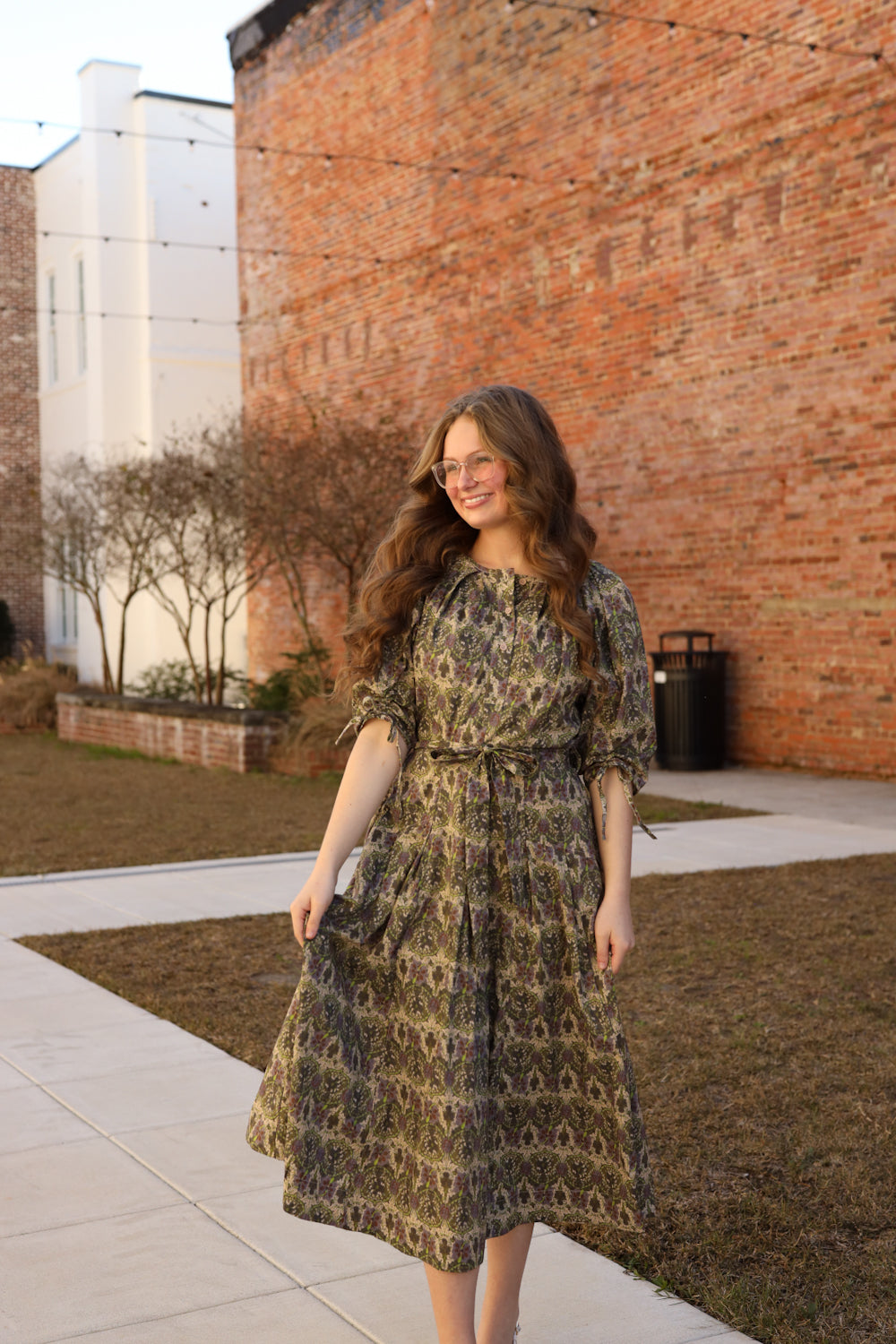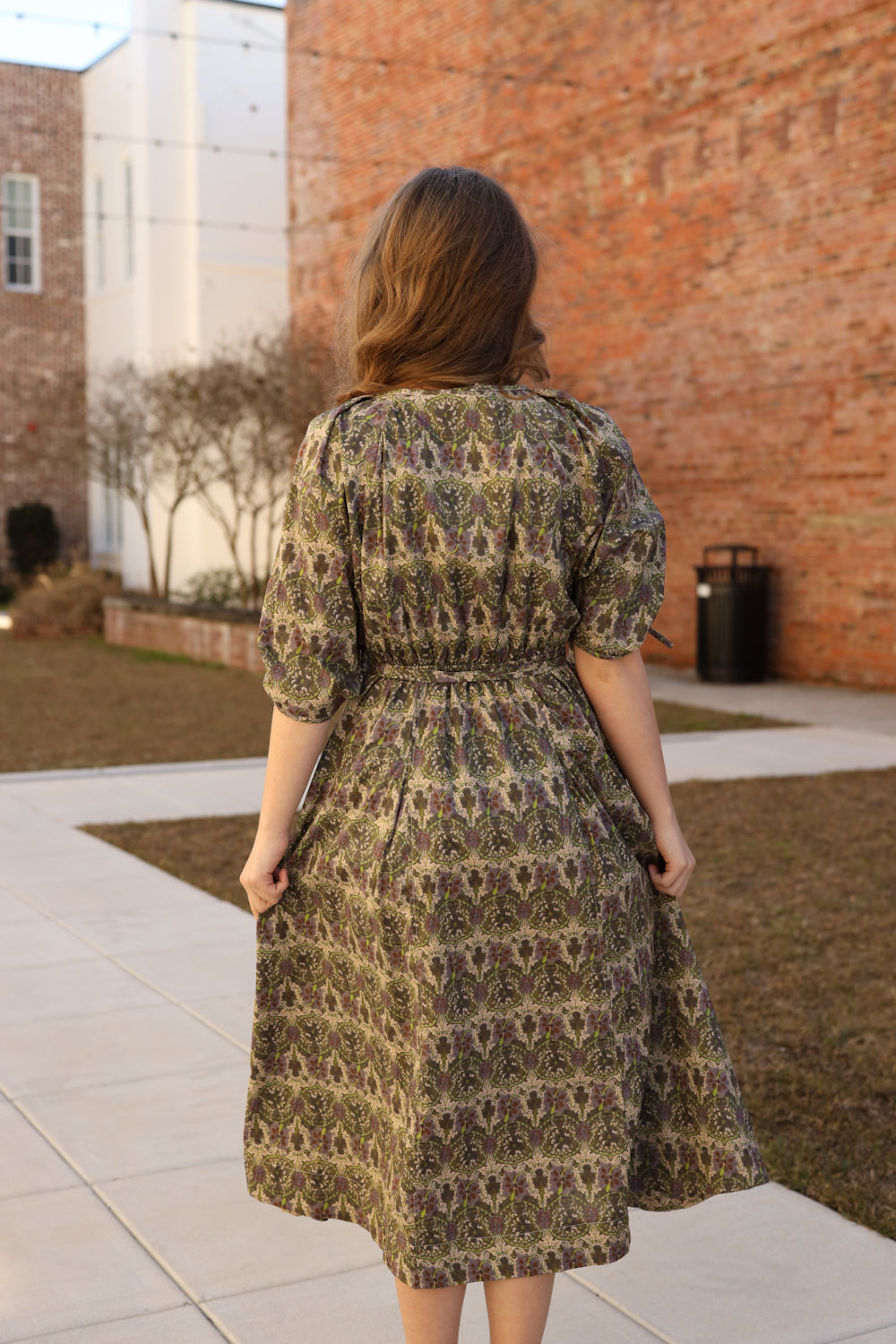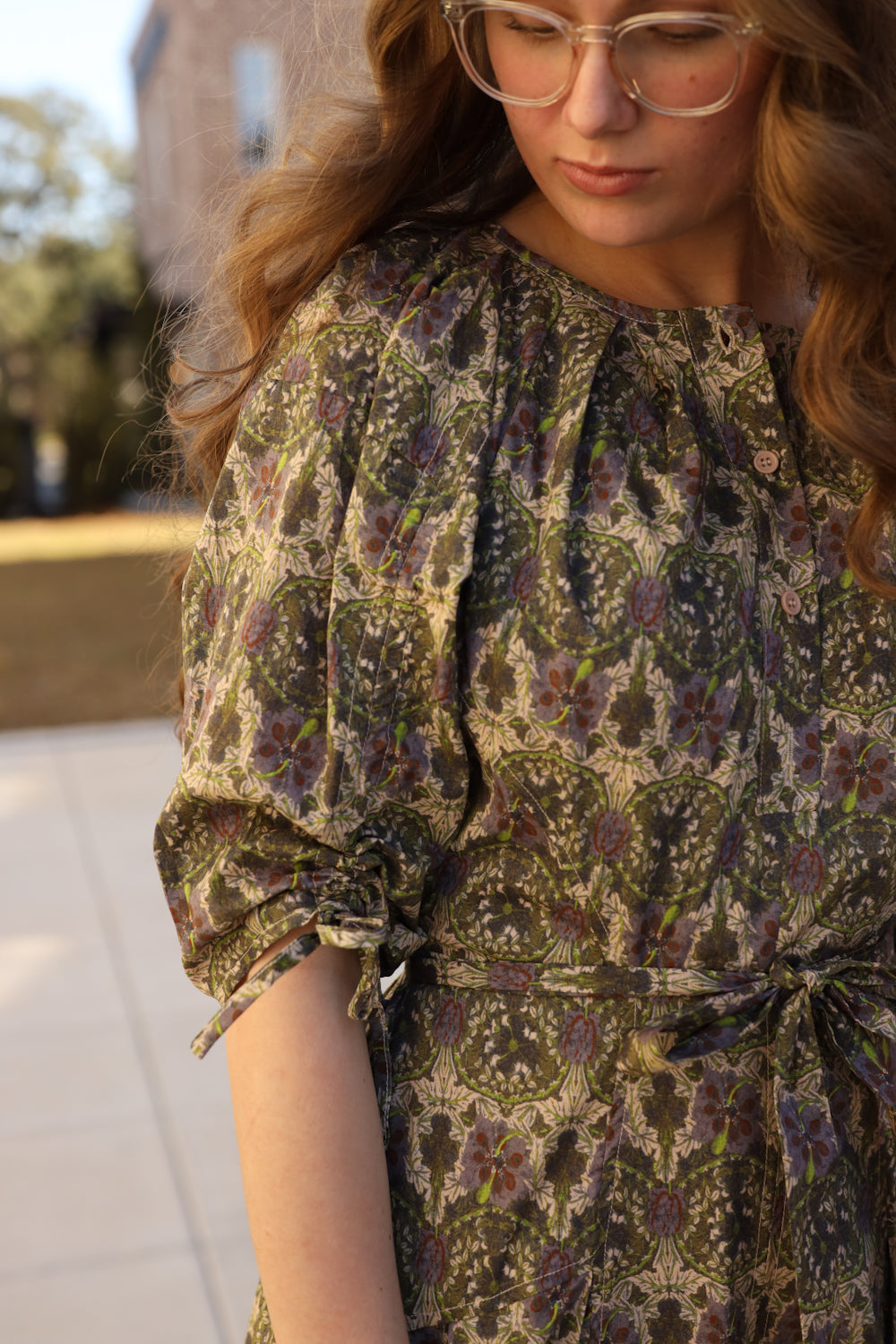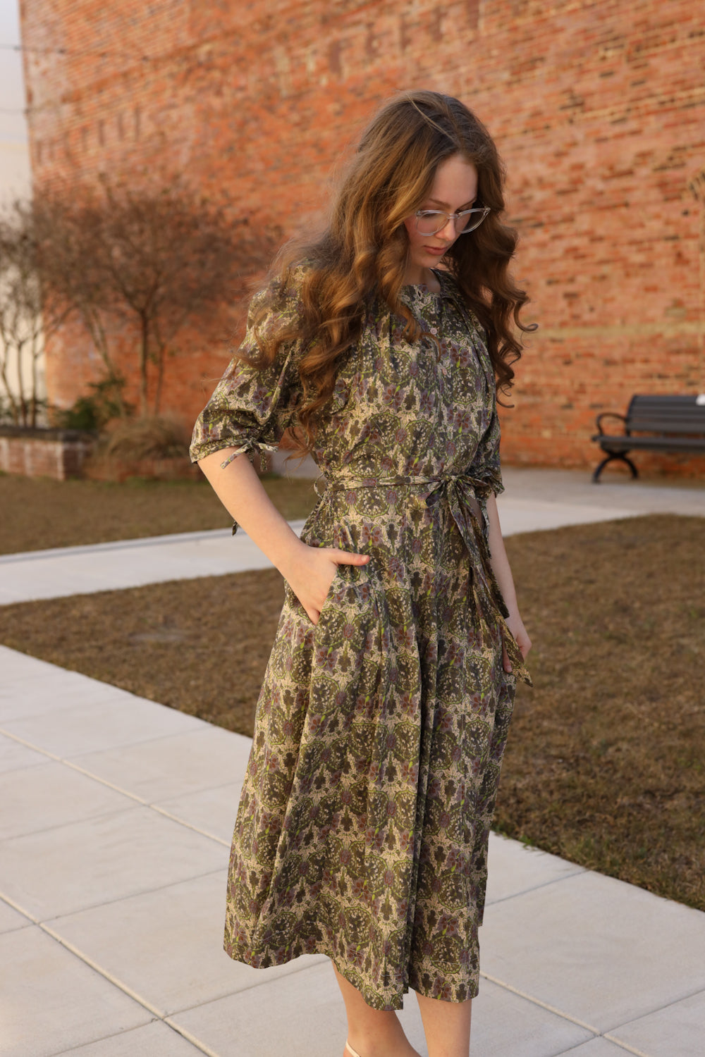 Regular price $69.99The Monica Dress is designed with a stunning olive and purple floral pattern with warm taupe undertones - a piece that feels as beautiful as it looks. Functional bodice buttons make nursing seamless and discreet, while adjustable 3/4 sleeves with tie details give you flexibility to gather and adjust the sleeve design. The waistline has back elastic with a removable tie. Practical pockets are also a great bonus. Pleated detailing in the skirt creates an elegant, flowing silhouette. Whether you're heading to the office or out for the evening, this versatile midi dress moves with you.