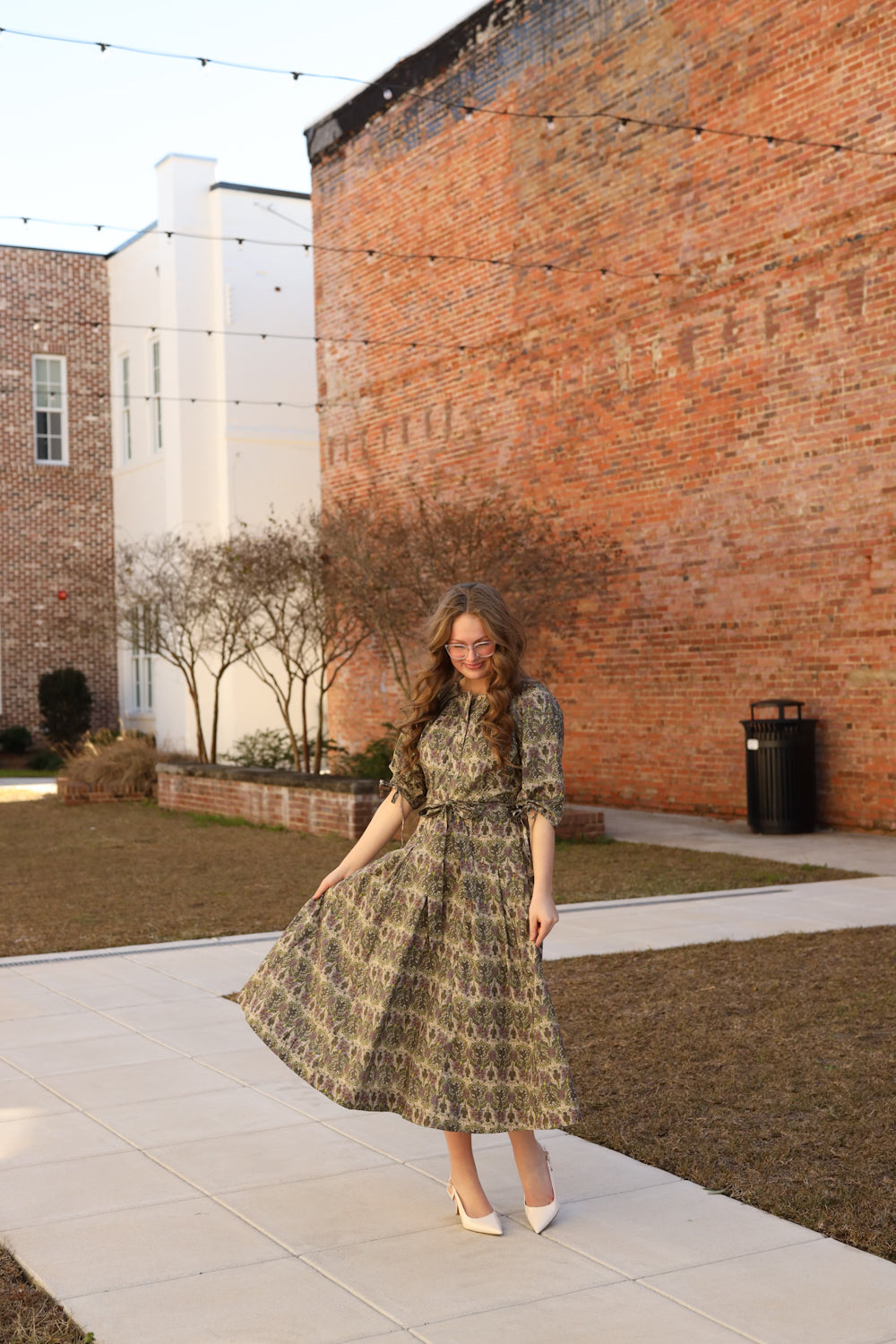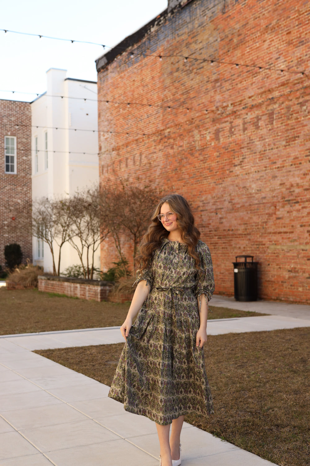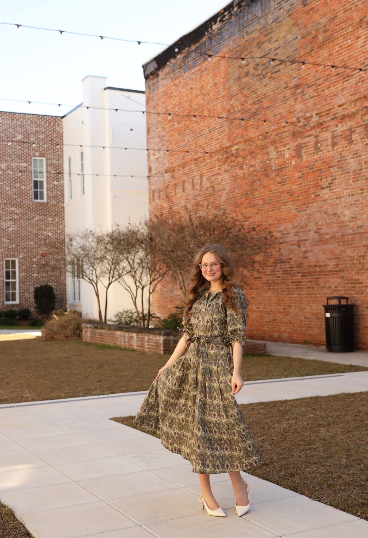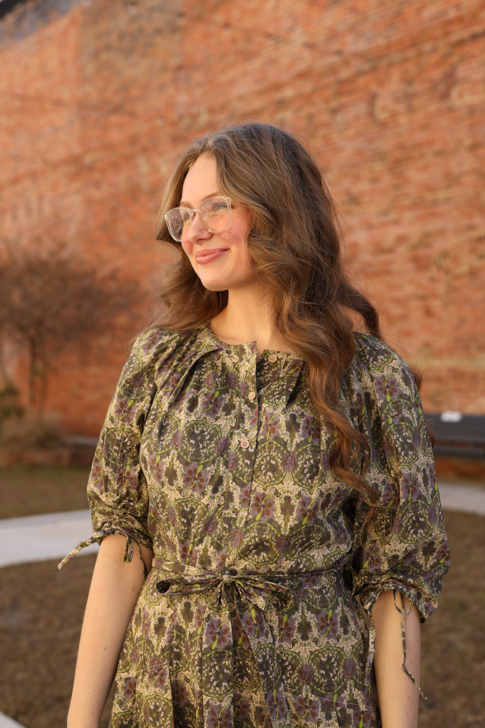 Regular price $69.99The Monica Dress is designed with a stunning olive and purple floral pattern with warm taupe undertones - a piece that feels as beautiful as it looks. Functional bodice buttons make nursing seamless and discreet, while adjustable 3/4 sleeves with tie details give you flexibility to gather and adjust the sleeve design. The waistline has back elastic with a removable tie. Practical pockets are also a great bonus. Pleated detailing in the skirt creates an elegant, flowing silhouette. Whether you're heading to the office or out for the evening, this versatile midi dress moves with you.