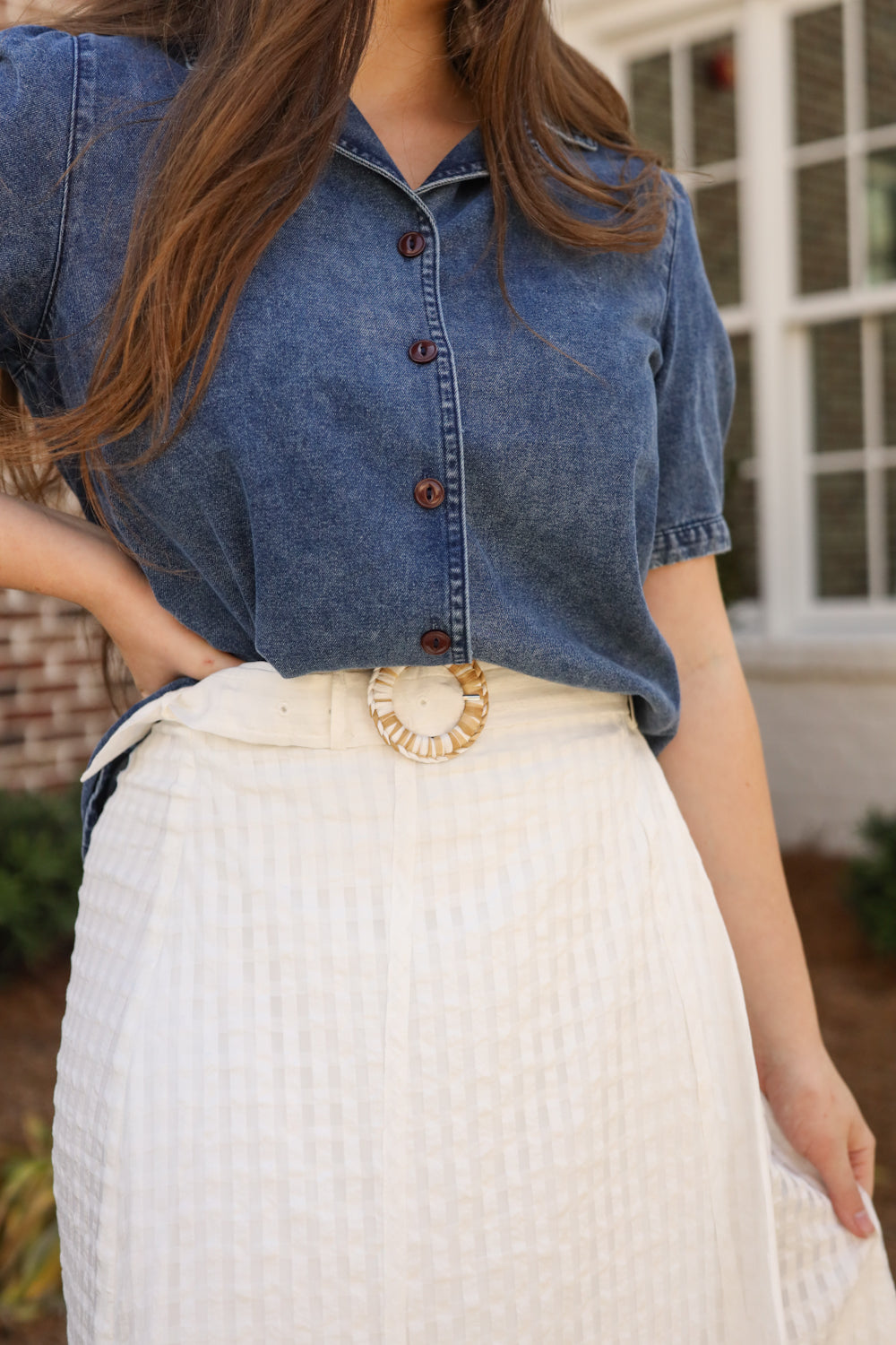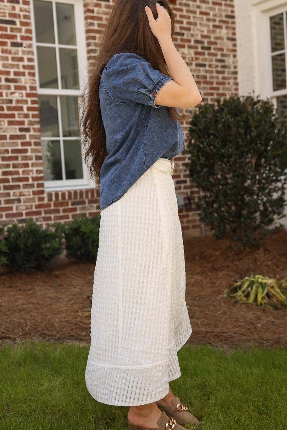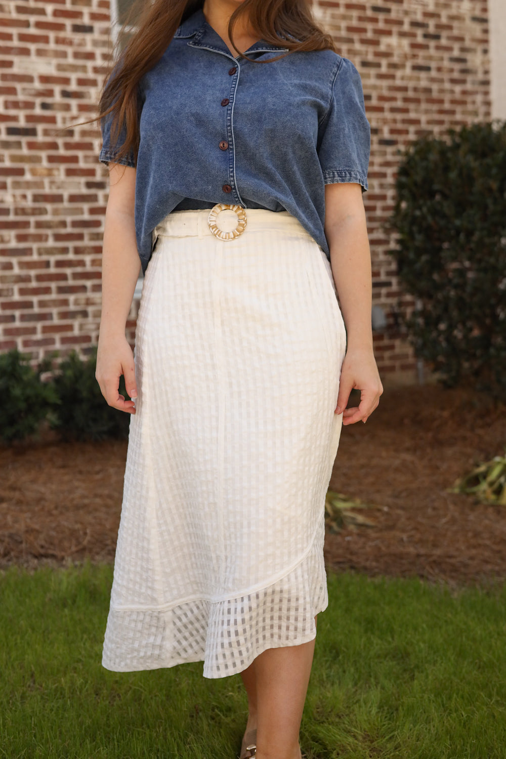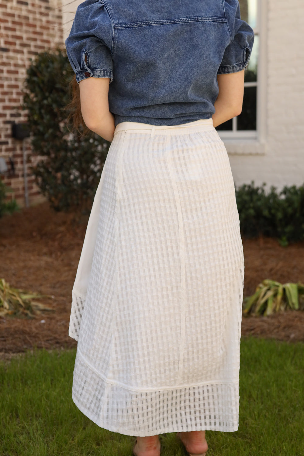The Elsa Skirt is here to transform your spring style with effortless charm! This delightful faux wrap skirt showcases a classic checked pattern and features a removable belt that dresses up the waistband. A side zipper keeps things convenient, while the sewn-down inner flap of the skirt ensures a polished, modest look. The asymmetrical high-low hem adds just the right amount of flair and movement. Whether you're dressing up or keeping it casual, this skirt is your new go-to piece for the season ahead!